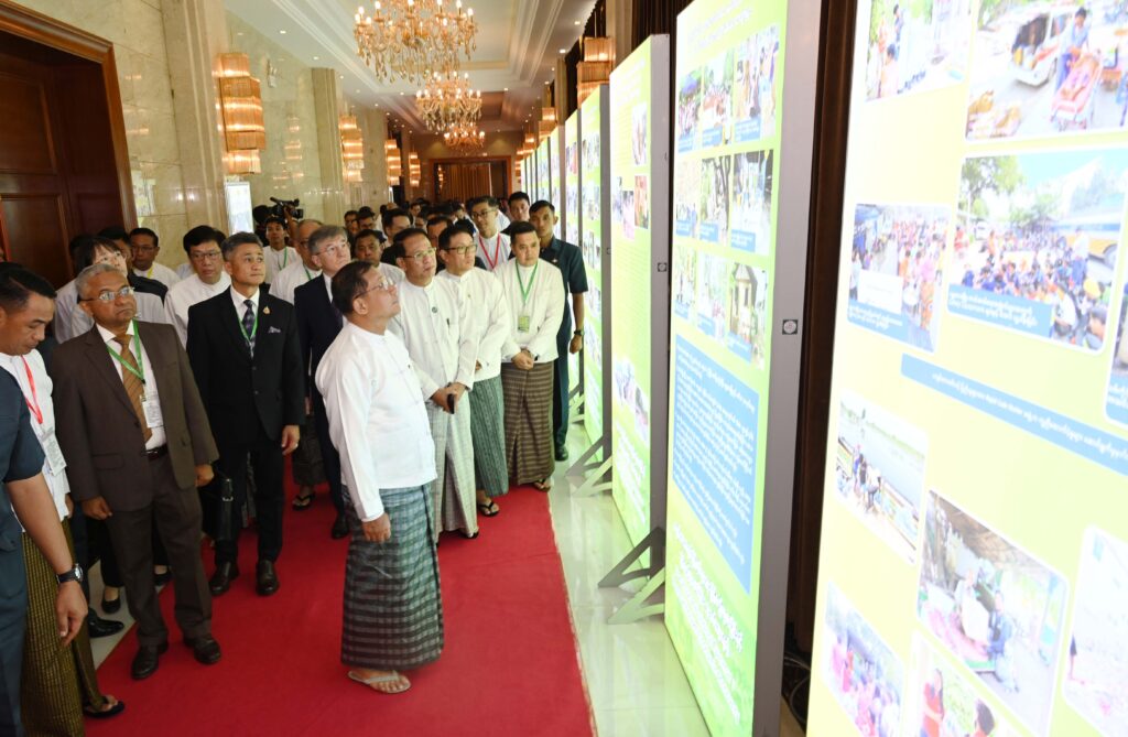 After the ceremony, the Senior General viewed round photo documentary of the loss and damage caused by the Mandalay earthquake, rescue and rehabilitation operations.